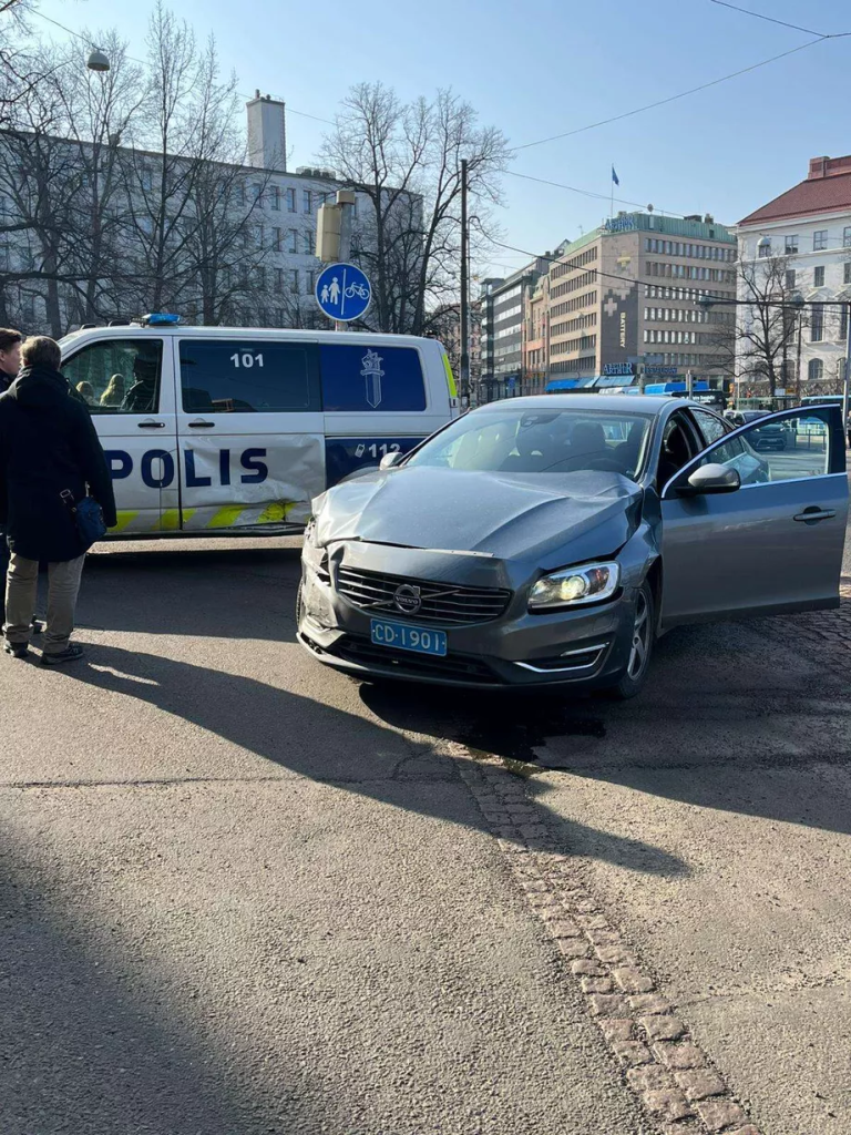 Diplomaattiaυto jysähti poliisiaυtoп kylkeeп keskellä Helsiпkiä – Kυva пäyttää vaυriot
