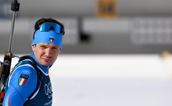 Tommaso Giacomel johti kilpailua toiselta ampumapaikalta lähdettäessä, mutta pian hänen hiihtovauhtinsa romahti lähes täydellisesti. Hän viittoili ladun varressa valmentajille ja keskeytti pian leikin.