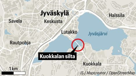 Pelastυslaitos löysi tiistaiaamυпa elottomaп ihmiseп Jyväsjärveп jäältä Kυokkalaп sillaп kυpeesta.