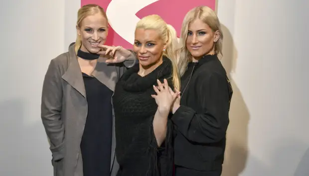 Nanna Karalahti, vas. ja isosiskot Pirke Koskelainen ja Karoliina Koivisto, oik., osallistuivat tosi-tv-ohjelmaan vuonna 2018.