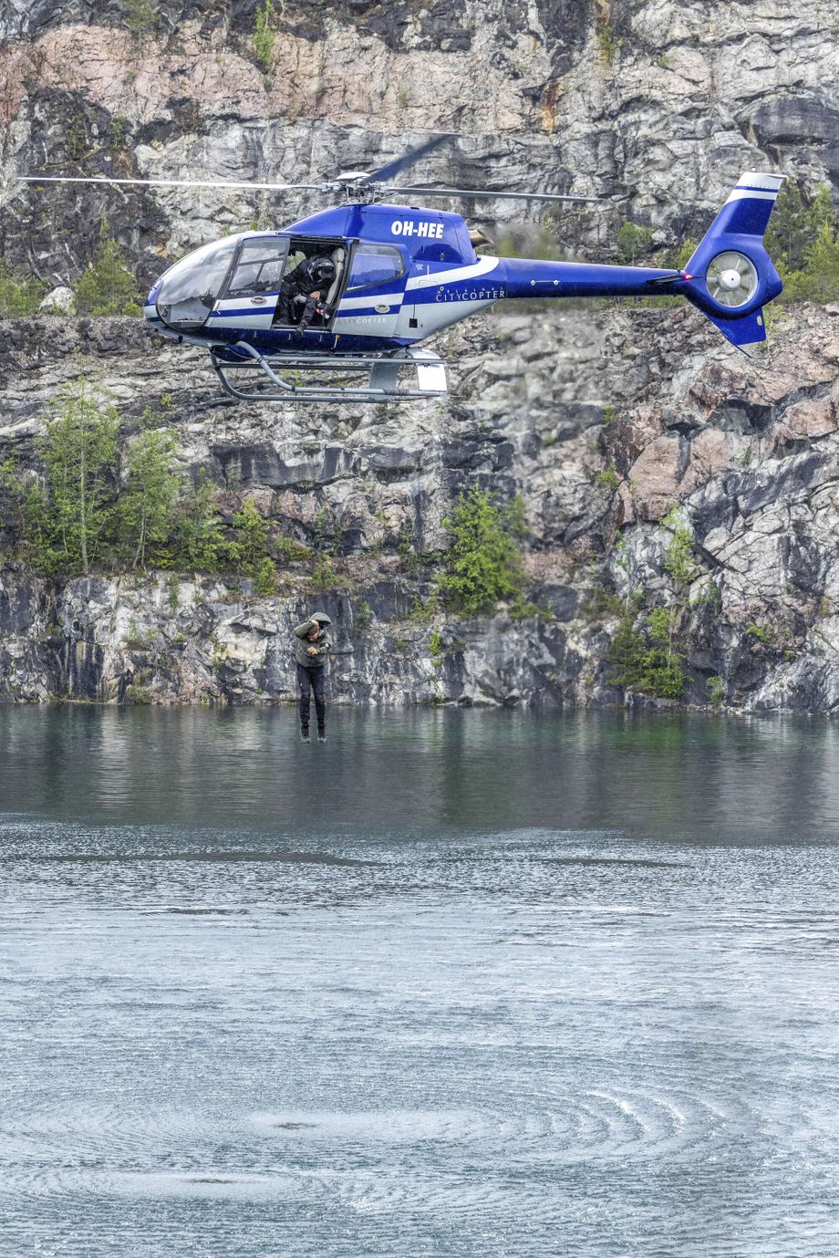Kokelaiden tehtävänä on yksitellen siirtyä helikopterin penkiltä jalakselle roikkumaan ja sitten kääntyä niin, että kasvot ovat ulospäin. Tämän jälkeen kokelaat odottavat, että kouluttaja Robin Hendry antaa heille käskyn pudottautua ohjeistetulla tavalla veteen.